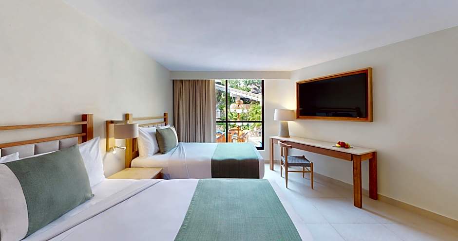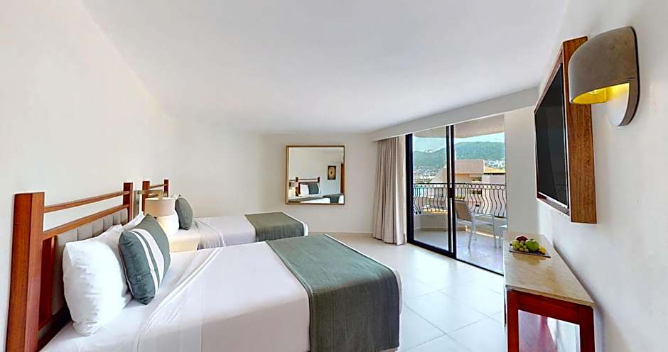 The spacious double room provides air conditioning, a wardrobe, a balcony with pool views as well as a private bathroom featuring a shower. The unit offers 2 beds.